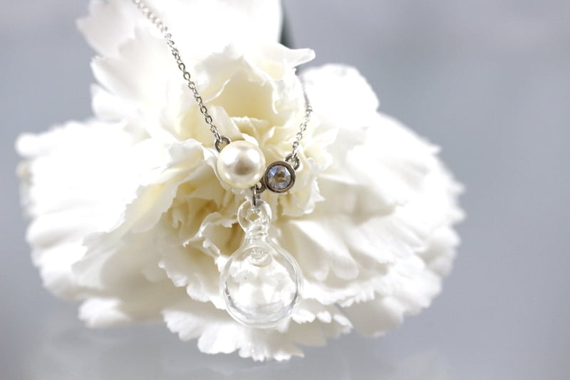 ガラス部分の小さな穴から、スポイトでお好きな香りを入れていただくことで、揺れるたびにやさしく香りが広がります。「一日中、心地よい香りに包まれるアクセサリー」です。