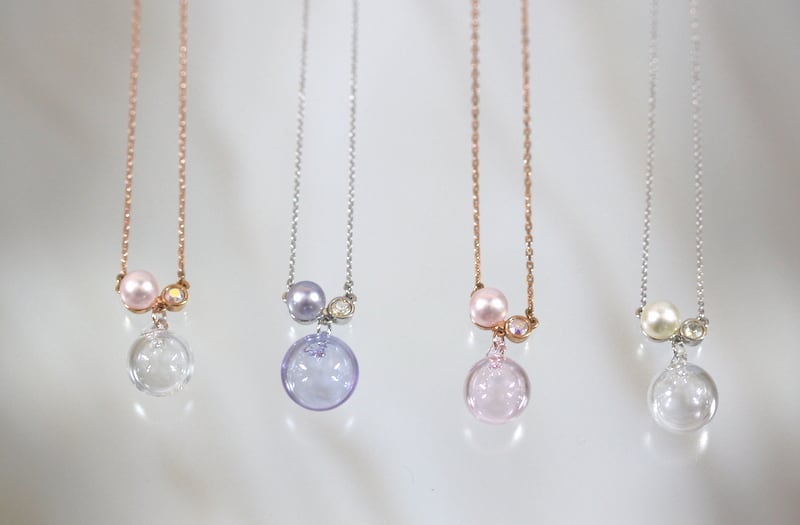 ガラス部分の小さな穴から、スポイトでお好きな香りを入れていただくことで、揺れるたびにやさしく香りが広がります。「一日中、心地よい香りに包まれるアクセサリー」です。